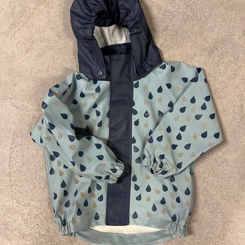 En pent brukt jakke fra p&p, klar for nestemann. Materialet er både vindtett og mykt, og gjør det enkelt for mini å bevege seg rundt. Hull til tomlene på ermene, disse kan evt også bare brettes opp og vekk. Noen få bruksmerker, generelt i god stand.