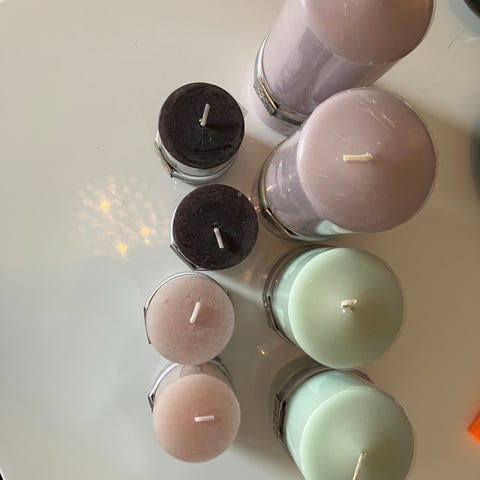 Rustikk kubbelys i fargen pudder rosa fra Lene Bjerre.