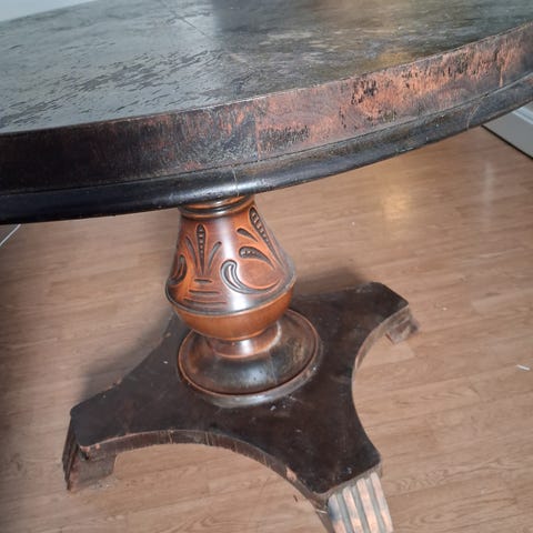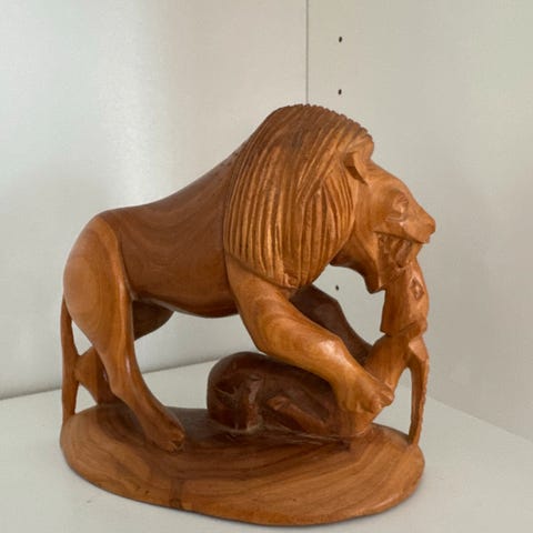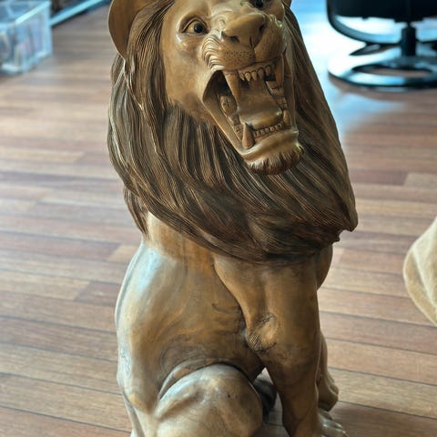 Fin og spesiell sittegruppe med MYE utskjæringer. Løveføtter og løvehode på alle armlener. Også utskjæringer av fuglen Føniks. Se bilder.......😁 Gruppen består av en 3 seter + to konge stoler- et stue bord med glass plate+ to side bord. Flere bilder kan sendes ved interesse! Utrolig fint holdt, ingen hakk eller rifter og ingen nagler mangler. Bud mottas med takk,men selges til høystbydende. Litt om hva utskjæringene betyr. Fugl Føniks er et fabeldyr fra egyptisk mytologi, hvor den er et symbol på gjenfødelsen. Legendene om fugl Føniks finnes også i gresk og romersk mytologi og i kristen ikonografi. Lignende myter gjenfinnes også i mange andre kulturer, som i Kina (fenghuang), Japan og Korea. Løven – det mektigste av alle dyr – kan symbolisere en rekke forskjellige ting avhengig av konteksten. Løven kan representere en herskers overmenneskelige styrke.