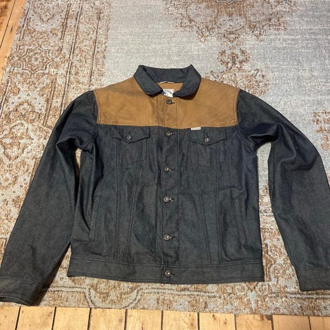 Tøff denim/skinn jakke selges