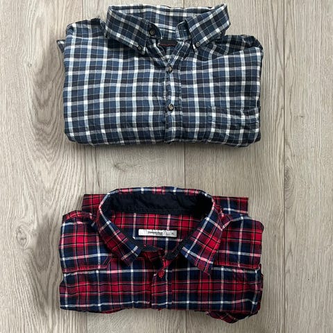 Det er én skjorte i størrelse S og to skjorter i str. M. Den ene skjorten har i tillegg en hette.