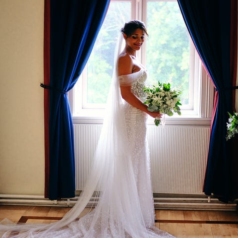 Brudekjole kjøpt hos white by green sommeren 2024. Fra merket made with love bridal i modellen Ollie.