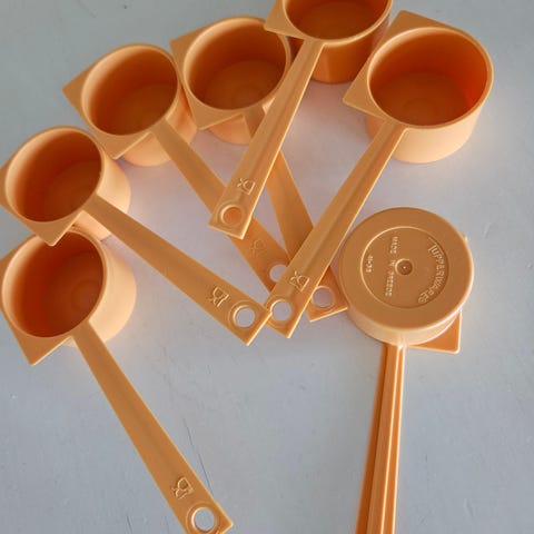 4 stk retro melskjeer fra Tupperware selges samlet. Hele og fine!