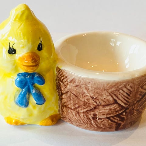 Eggeglassene er av porselen og de har ingen skader.Prisen er 50 kr pr stk.De kan hentes hos meg i Oslo eller jeg kan sende dem og kjøper betaler porto.Jeg selger mye forskjellig.Klikk deg inn på profilen min så kan du se mine andre annonser.