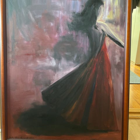 Maleri av kvinne med rød sjal