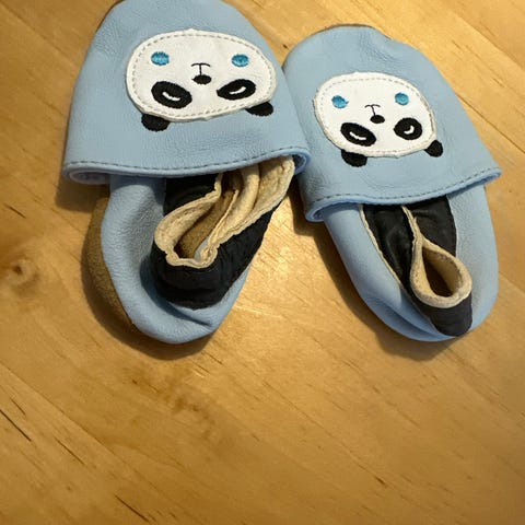 Brun skinn tøfler til krabbing eller vogn str 18.