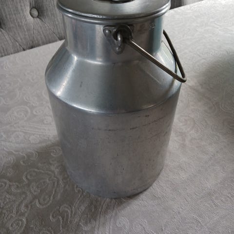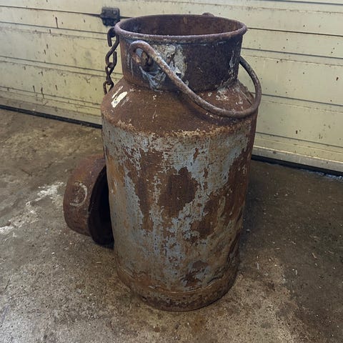 Gammelt stort grønt melkespann i metall