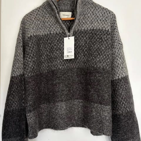 Tine Knit Crew Neck fra Holzweiler. Genseren har avslappet passform med senkede skuldre og rund hals. Ribbestrikket krage samt ribbestrikkede mansjetter og kanter. De nøytrale gråtonene gjør at genseren både passer over sommerkjolen og med jeans og boots i de kaldere månedene.
