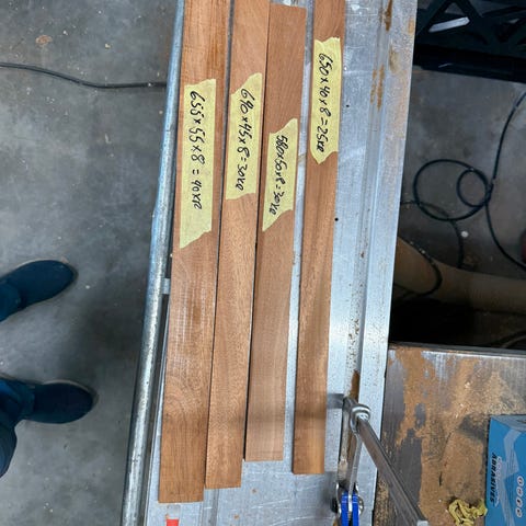 Har også noe plantasjeteak/broilerteak i litt tynnere dimensjoner