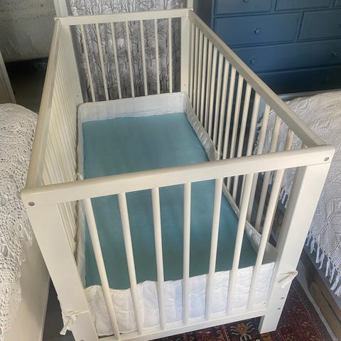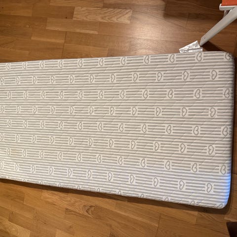Dette var den beste og dyreste babymadrassen til IKEA og er pent brukt av mine barn. Har alltid brukt tisselaken på den, så det har aldri vært noen flekker på den. Følger og med overmadrass i samme serie og tisselaken. Den er i memoryfoam, et veldig behagelig materiale for den lille babyen