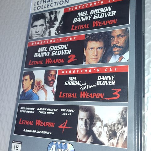 Pent brukt. Norsk tekst. De 4 Dødelig Våpen filmene. Mel Gibson - Danny Glover