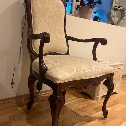 Klassisk salongbord med firkantet glassplate og utskåret ramme i tre. Bordet har dekorative detaljer på ben og ramme, med en underhylle for ekstra oppbevaring. Passer til bruk i stue eller oppholdsrom.