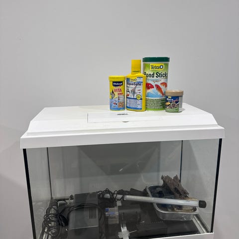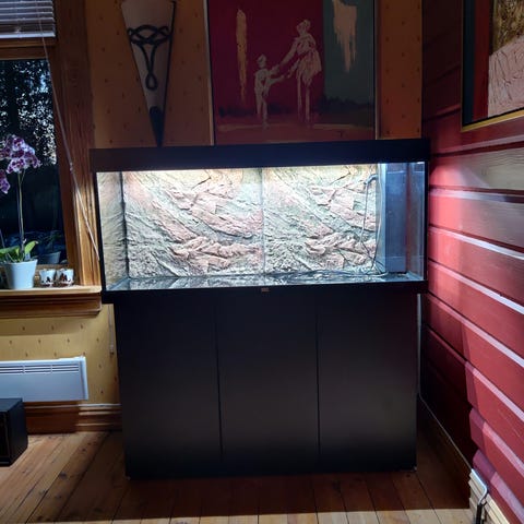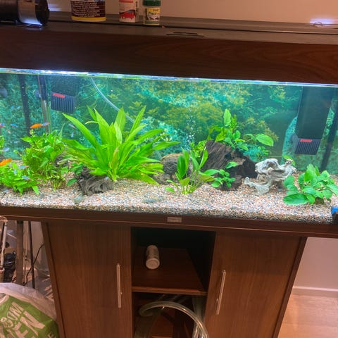 Jeg selger et 100 liters Juwel akvarium med masse fisk og planter. H46×L80×35. Akvariet er hjemsted for rundt 100 små fisken og 14 store ansitrus, guppyer og flere andre fisker. Verdien av all fisken er ca 4.000 - 5.000kr. Selges uten luftpumpe.