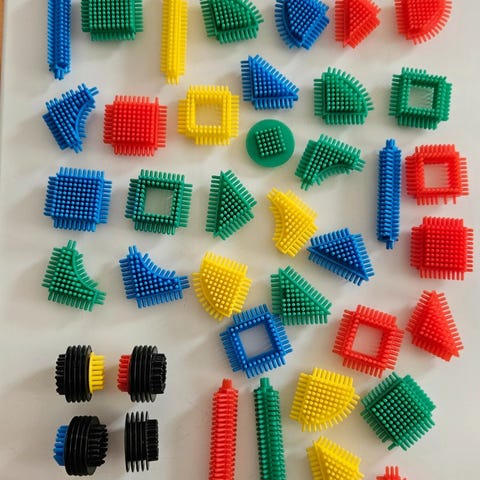 Pent brukt store byggeklosser i plast. Passer perfekt for små barn. Kan sendes.