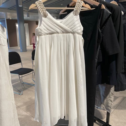 Flott kjole i tyll med knapper bak, fra h&m str 134 som tilsvarer 8-9år, følger med svarte litt høyhelte sko str 34🌸