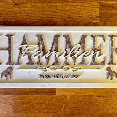 Gi hytta di et varmt og personlig preg med dette eksklusive hytteskiltet i solid eik.