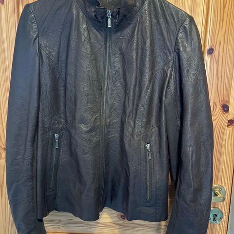 Pent brukt skinnjakke fra Alexander i mykt skinn. Jeg har fjernet merkelappene, størrelse ca 40—42. Paneler med stretch stoff på ermene. Kjøper betaler frakt.