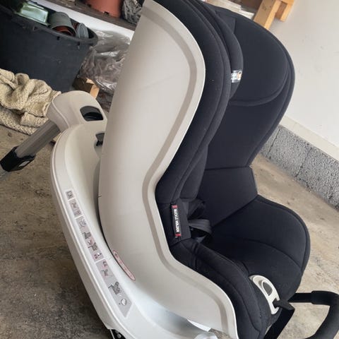 Kan justere fra ligge posisjon til sitte posisjon. Helt og pent sete, aldri vært i kollisjon. Helt genialt sete som kan snus for å ta ut barnet uten problemer.