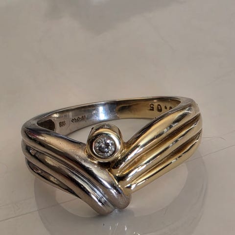 Gult gull ring 585 str 58. 0,12 carat w,si.Flere diamanter.