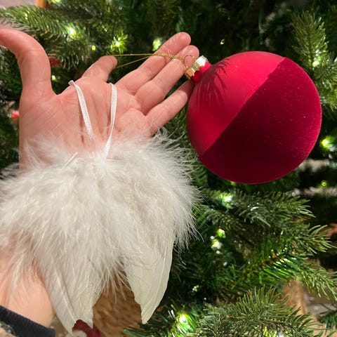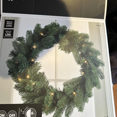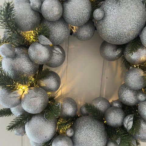 Kransen har en delikat røykblå farge og påført sølv pudder.