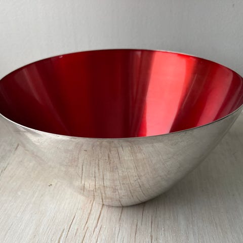 Skål høyde ca 12 cm og diameter topp ca 29 cm