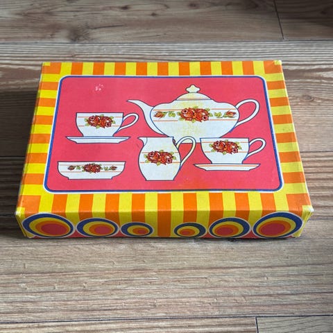 Vintage ubrukt koppestell / dukkeservise fra 1960 tallet,