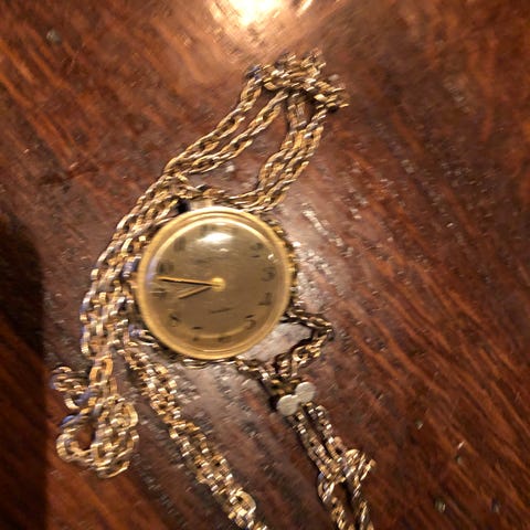 Clipper mekanisk dameklokke med kjede selges. Gult gullbelagt stainless steel. Lengde på kjede 91cm. Klokken brukt men fungerer perfekt, som de skal.