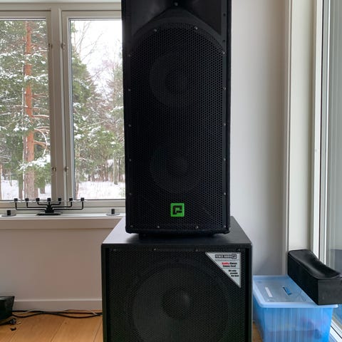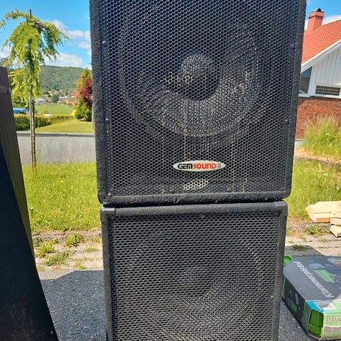 Selger disse to da mine høytaler dager begynner å gå over. Har hatt disse som hjemme kino anlegg. Noe skrammer, Klarte å kneke det ene håndtaket da jeg skulle løfte den med en hånd på vinteren....🥲