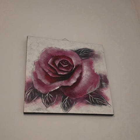 18 x 24 cm akryl rosemaling på lerret spent på blindramme.