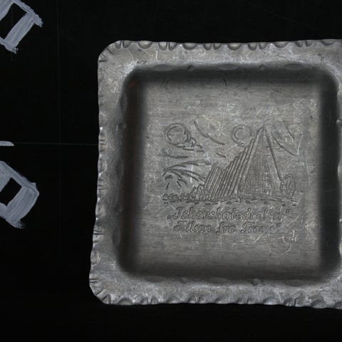 Denne fine, vintage flisen kommer fra engelske Pilkington, og er antakelig laget på 60-tallet. Det er en keramisk flis med trykkdekor som forestiller scener fra de pietistiske Amana-koloniene i Iowa. Overskriften sier: «The Amana Colonies in Iowa», og bildetekstene sier: «Lily Lake», «Typical Home», «Handicrafted Furniture» og «Fine Woolens». Bak er flisen merket med «15 / PILKINGTON / B / ENGLAND». Noe misfarging bak, et lite nagg i kanten og noe slitasje på dekoren, men flisen fremstår som pen. Kvadratisk, 15 cm Høyde: 0,5 cm Vekt: 253 g.