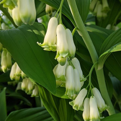 Polygonatum multiflorum - Storkonvall er en flott staude for de mer skyggefulle bedene i hagen. Den har nydelige, hvite klokkeformede blomster og gjør seg godt sammen med f.eks. bregner og Hosta.