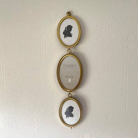 Dekorativ fotoramme laget av messing . Rammen har et intrikat mønster og en åttekantet form, som gir et klassisk utseende. Den er egnet for små bilder og kan plasseres på bord eller hyller. Bakstøtten er laget av sort materiale for stabil plassering.