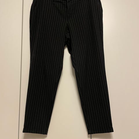 Kul stripete ankelbukse fra Ann Taylor/Loft, US str 6. Buksen har en liten splitt nederst og er i tykkere bomullsstoff. Lengde 82cm, livvidde 40cm. Dress opp med sort blazer eller ned med olaskjorte. Kun brukt en gang.