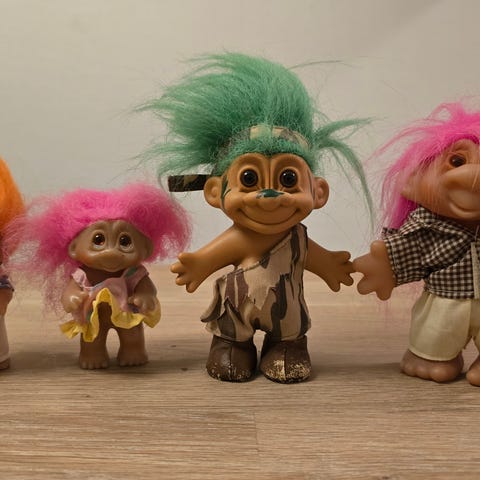 Troll til blyanter, 5stk m hull,3 stk uten hull.største er 3,5cm,minste ca 2cm,kan sende,kjøper bet porto Se mine anonser