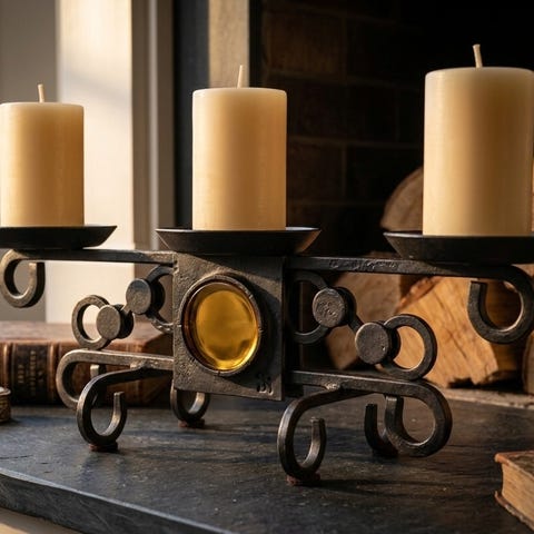 Vintage, retro, speil, stearinlys, holder, stake, dekorasjon, grandmacore, lysestake.