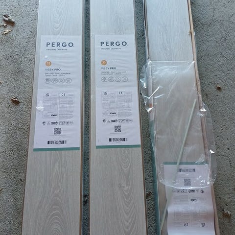 Pergo gulv 1 hel pakke og en pakke med 3 lengder selges 200 kr.