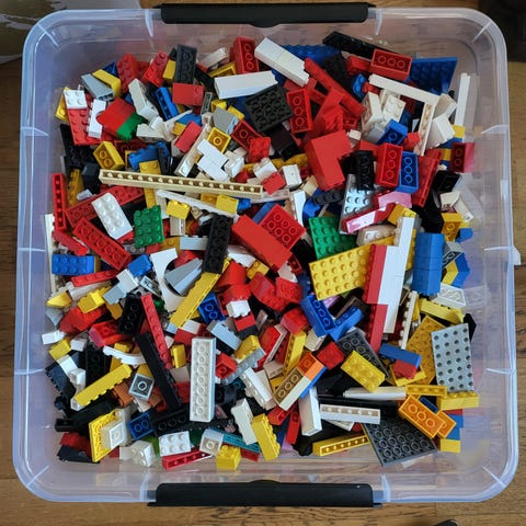 Stor eske med Lego selges.