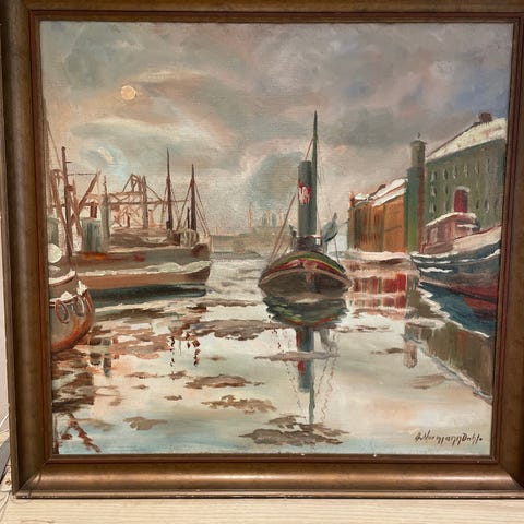Maleri fra Trondhjem Indre kanalhavn Gryta 1953