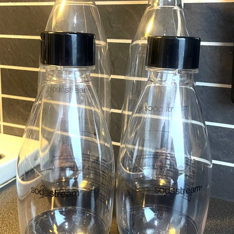 6 flotte glasskrukker selges samlet. En passer bra til spaghetti, 2 til olje og eddik, i tillegg en stor, 1 rød mellomstor og 1 liten. Disse er veldig lite brukt, olje og eddik er aldri brukt