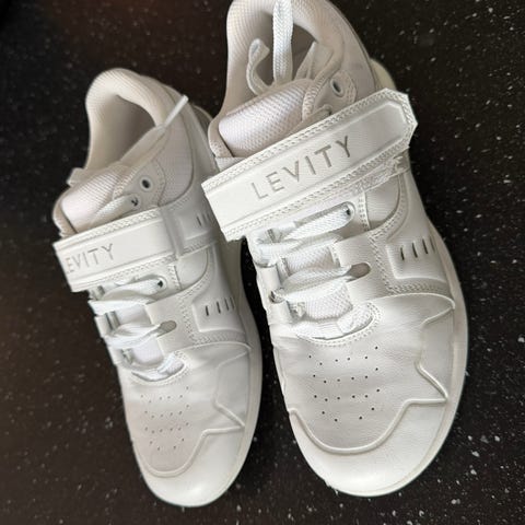 Kun brukt en gang. De er dessverre for store for meg. De er i størrelse 45. Gode sko til knebøy og lignende øvelser.