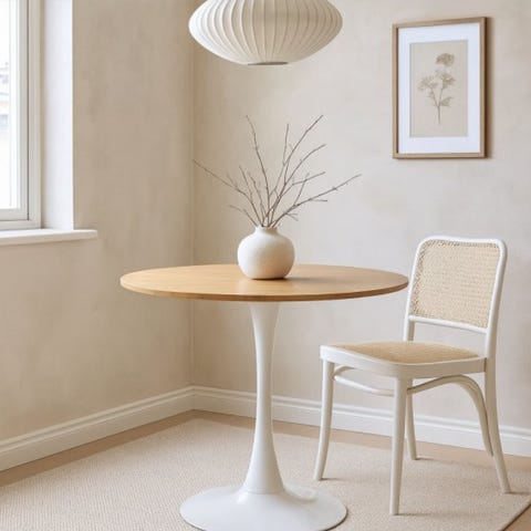 Owen er et funksjonelt og moderne nordisk spisebord med utallige muligheter – for med et rundt bord har du alltid plass til én til! De kraftige sylinderbena i massiv eik gnager seg inn i bordplaten laget av vakker eikefinér, og sammen gir de både god stabilitet og et designmessig preg.