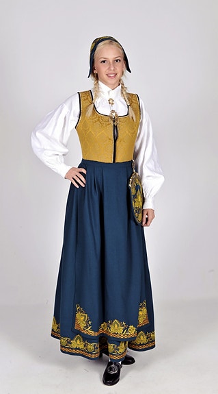 Komplett Vestfold damebunad med skjorte og veske. Sølv kommer i tilegg. Skreddersydd til din figur.