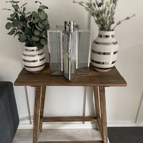 Selger 2 stk konsoll bord med glass plate, jeg har bare brukt de til pynte bord. De er veldig fine og sette inntil hverandre!