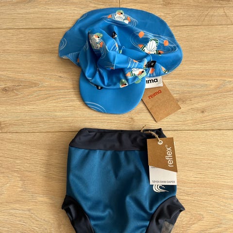 Badesko ca 1- 2 år. Aldri brukt. Høykvalitets med silikonsåle. Pen turkisfarge