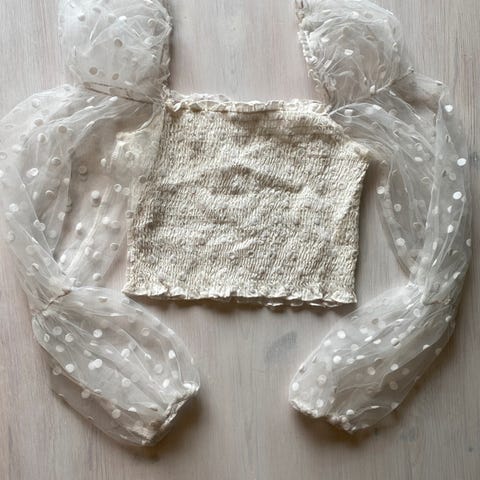 heklet mesh tube topp + knyting bak, med søte perle detaljer! passer en xs. aldri brukt<3