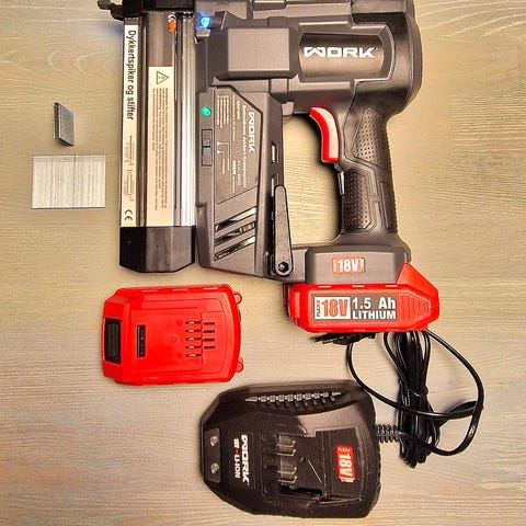 Med et kraftig 3,0 ampere batteri kan du skyte opptil 1 500 dykkert per lading, mens et 2,0 ampere batteri klarer cirka 1 300 dykkert. Dette gjør dykkertverktøyet til det perfekte valget for både profesjonelle og hobbybrukere som søker pålitelighet og effektivitet i arbeidet sitt. Batteri og lader følger med. 2 stk batteri og 1 lader.