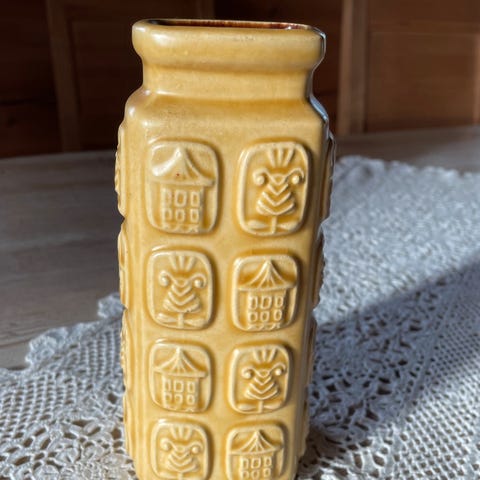 Ukjent opphav - har en liten skade på toppen - se bilde. 12cm høy - øvre diameter er 11cm - selges for kr. 50 + frakt