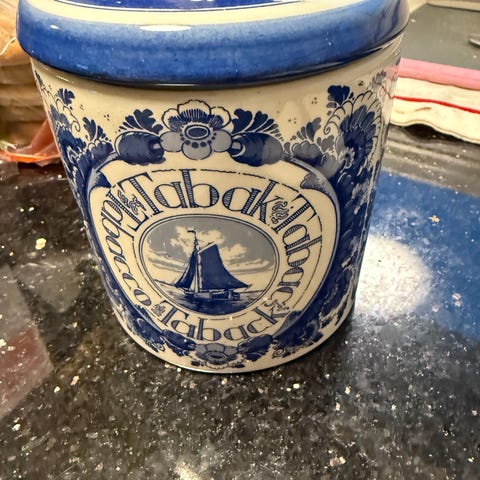 Delft Blue Krukke / Smykkeskrin og Tresko - Håndmalt