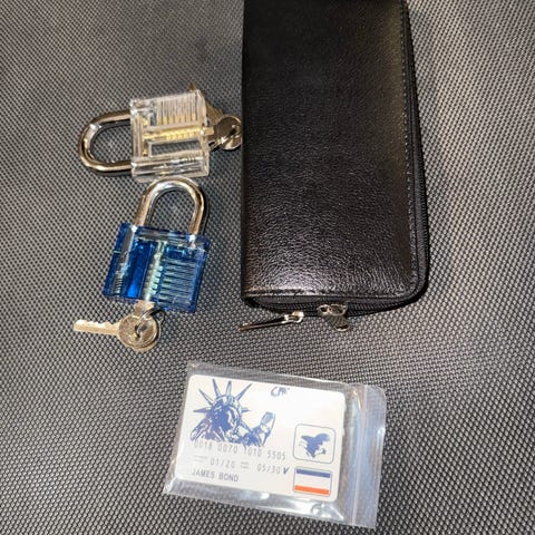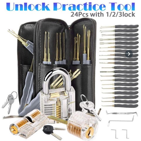 Selger dette flotte dirkesettet for rørlås 7mm, 7,5mm og 7,8mm. Medfølger en øvelseslås.