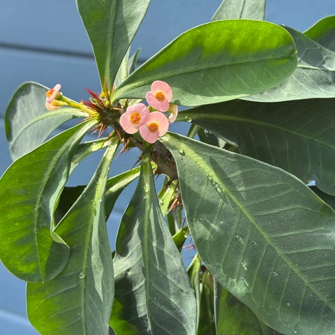 Selve plant er frisk og vokser fort. Den klatrer på en "stygge" og er 1,1m høy.